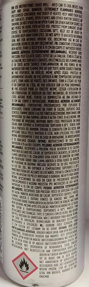 Składniki: Butane-Isobutane-Propane, C12-15 Alkyl Benzoate, Aluminum Chlorohydrate, Isododecane, Parfum/Fragrance, Diisopropyl Adipate, Neopentyl Glycol Diheptanoate, Disteardimonium Hectorite, Propylene Carbonate, Limonene, Benzyl Benzoate, Linalool.