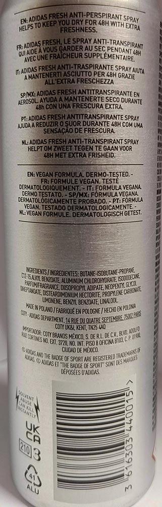 Szczegółowy opis męskiego antyperspirantu, linii Adidas Fresh