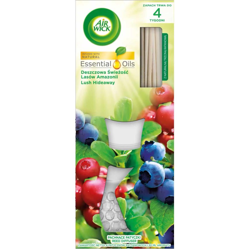Przed Tobą Air Wick Essential Oils Deszczowa Świeżość Lasów Amazonii. To patyczki zapachowe, pozwalające stworzyć niepowtarzalny klimat w każdym pomieszczeniu.