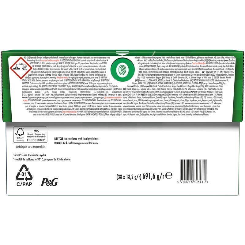W skład opakowania wchodzą 38 kapsułki piorące