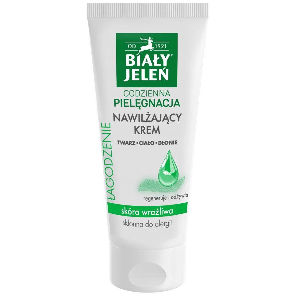 Szczegółowy opis nawilżającego kremu do twarzy, rąk i ciała z serii Biały Jeleń Codzienna Pielęgnacja – Łagodzenie.