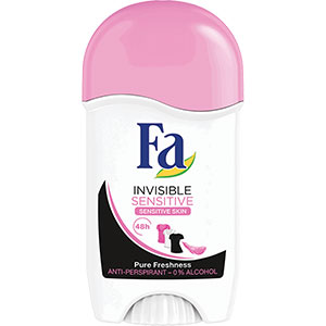 Fa sztyft Invisible Power Pure Freshness dla wrażliwej skóry. Dezodorant w sztyfcie Fa dla kobiet do jeden z najbardziej skutecznych sposobów na zabezpieczenie się przez nadmiernym poceniem. Świetnie sprawdzi się nawet w upalne dni i podczas uprawiania sportu. Fa sprawi, że będziesz czuć się świeżo przez długie godziny. Nie powoduje podrażnień delikatnej skóry pod pachami. Pojemność 50 ml.