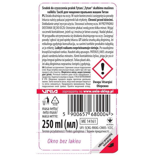 Opis Tytan płyn do czyszczenia pralek 250ml