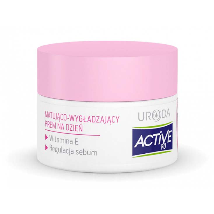 Uroda Active 90 krem matująco-wygładzający na dzień o lekkiej konsystencji, dzięki czemu szybko się wchłania. Ma działanie regenerujące i antyoksydacyjne, wygładza zmarszczki i zapobiega pojawianiu się nowych, spowalnia procesy starzenia i ogranicza negatywny wpływ promieni UV na skórę twarzy. Produkt zawiera w swoim składzie witaminę E, prowaitaminę B5 i kwas hialuronowy. Bardzo dobrze się sprawdza jako lekka baza pod makijaż. Pojemność opakowania 50ml.